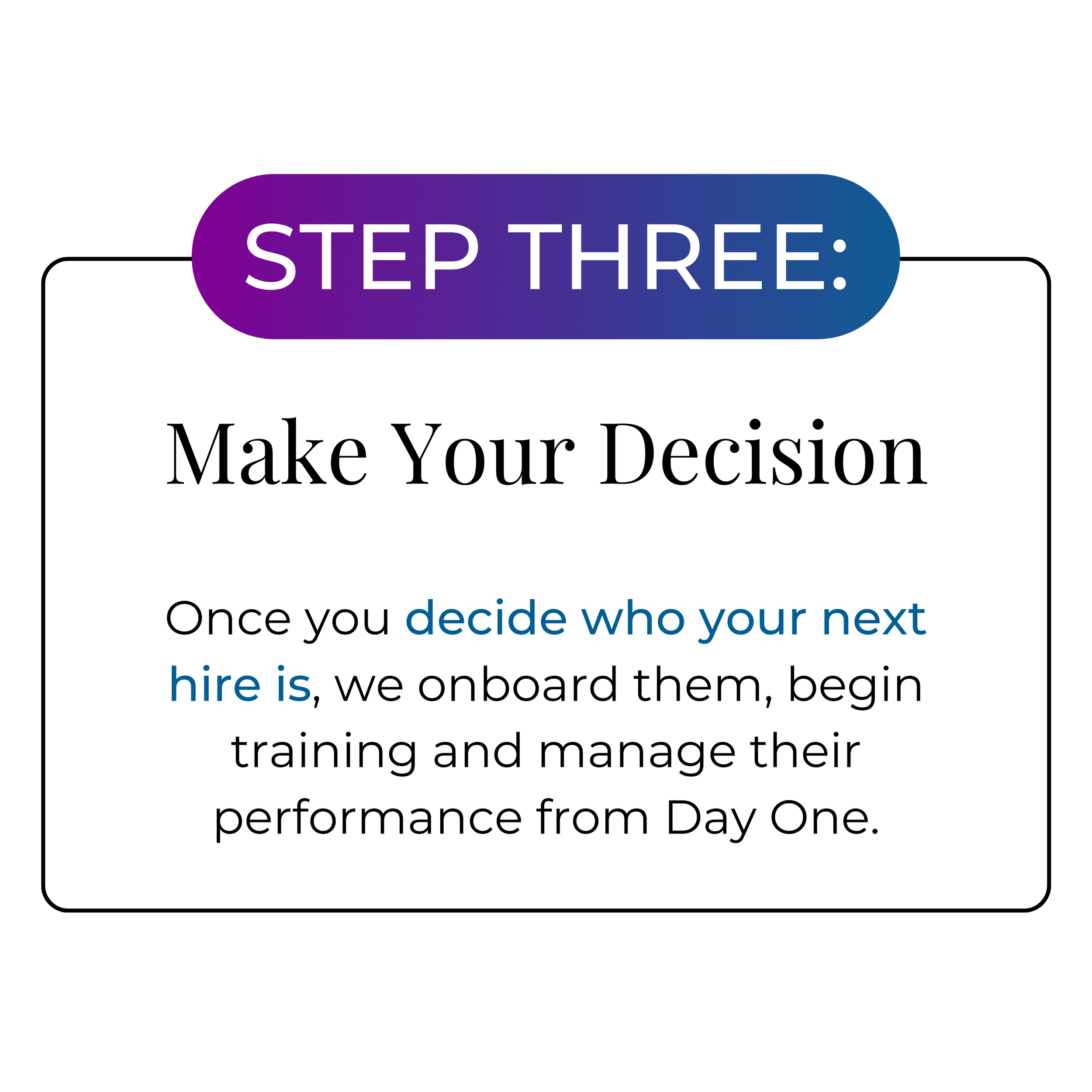 We bring the right person to you and manage their performance so that you can focus on what's important: growing your business.